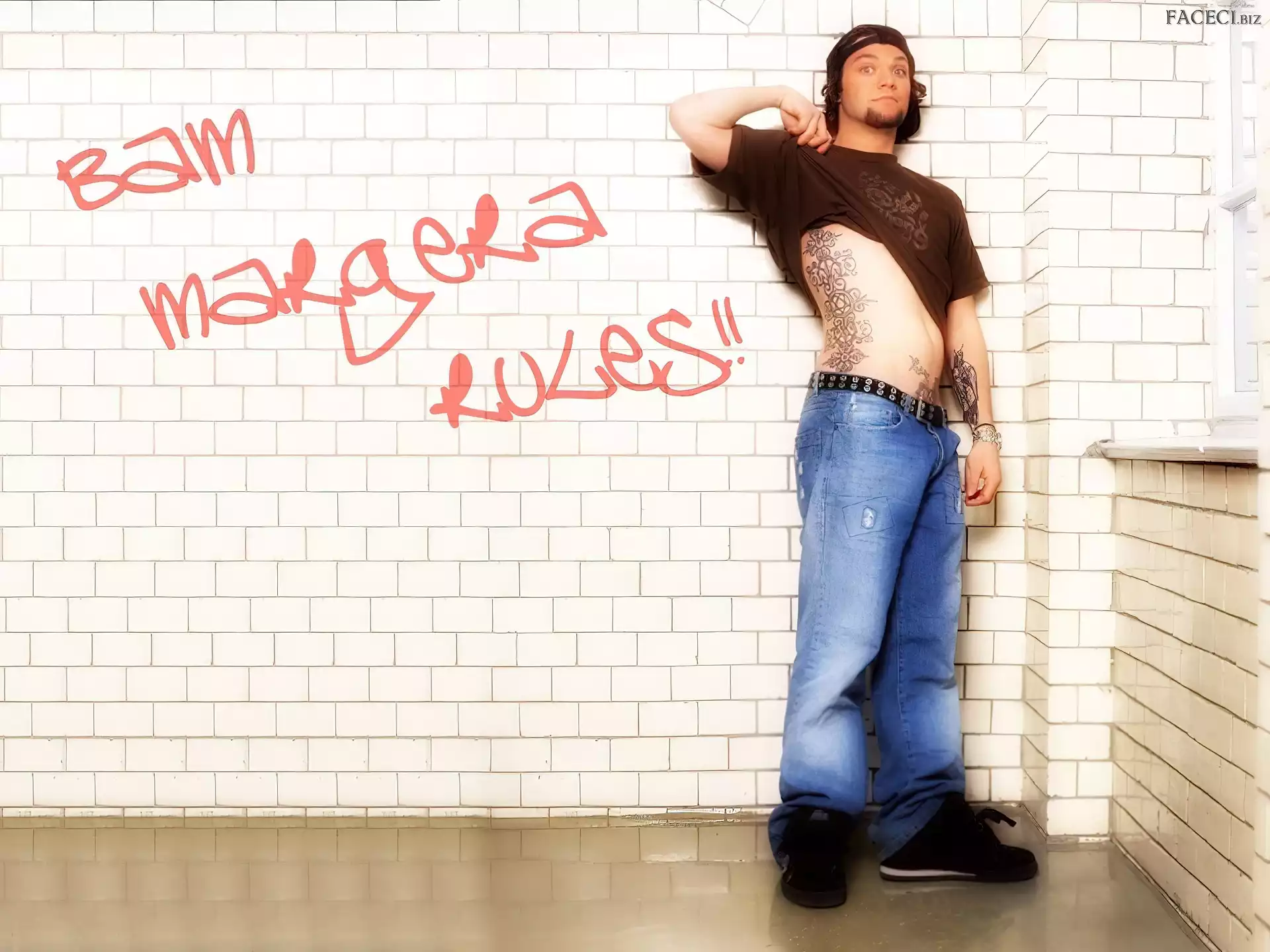 kurtka, Bam Margera, rozpięta t-shirt, Bam Margera, brązowy okulary, Bam Margera, twarze zegarek, Bam Margera, deskorolka okulary, Bam Margera, butelka włosy, Bam Margera, ciemne